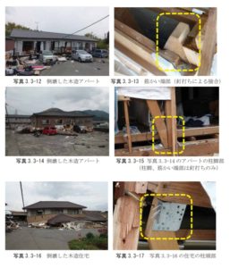 主な原因は、敷地の崩壊などを除きますと、不十分な接合部(金物を使わない釘打ちの接合)が確認できました。