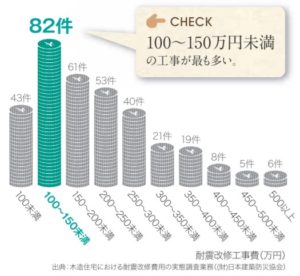 100万円~150万円の工事が最も多く、助成金制度を利用すれば自己負担も少なく済みます。