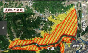 釜無川以外でも、笛吹川、荒川、相川、濁川、滝戸川、平等川、境川などのそれぞれで浸水エリアが下記のサイトから確認が出来ます。