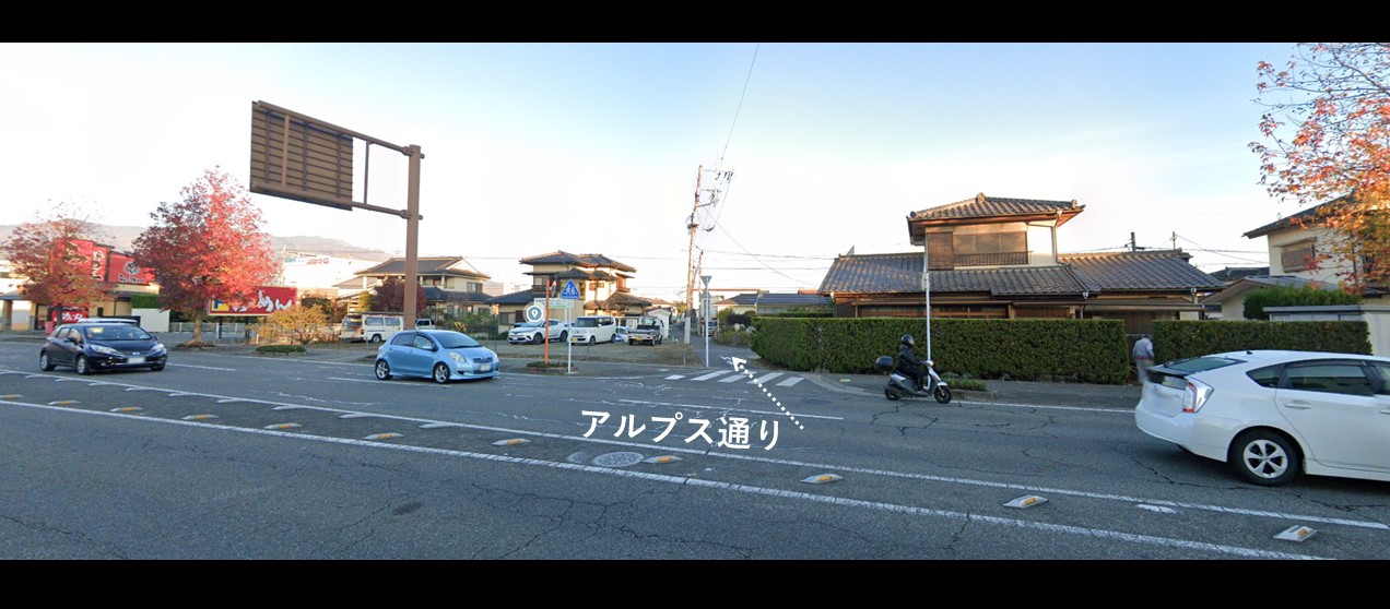 「アルプス通り」から20mほど北側に入った住宅地にあります。
