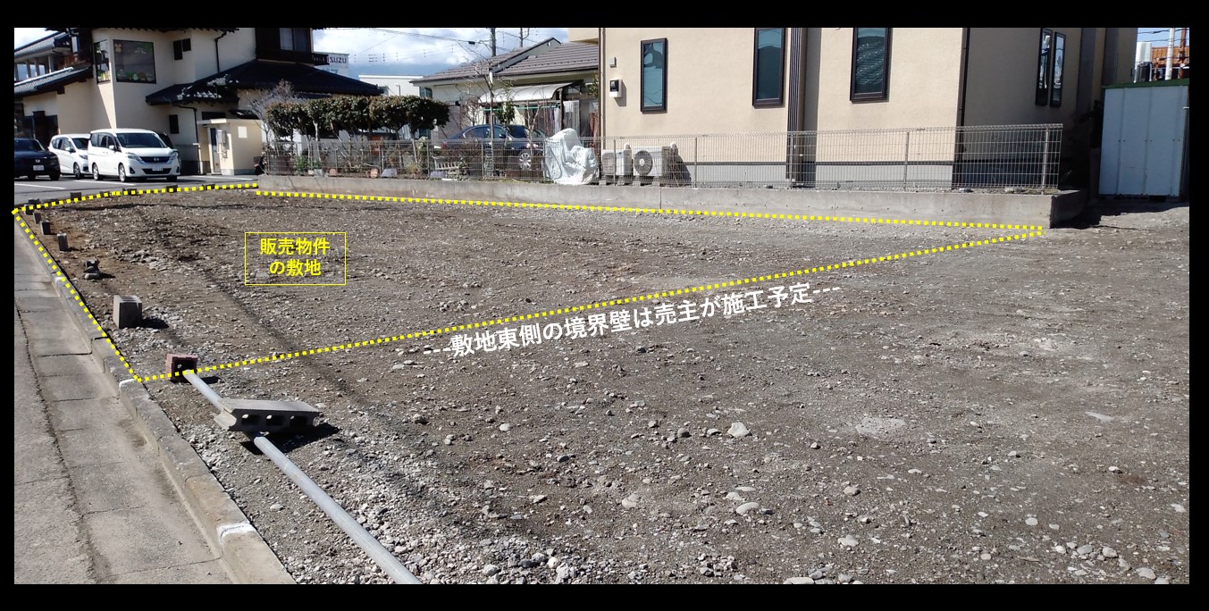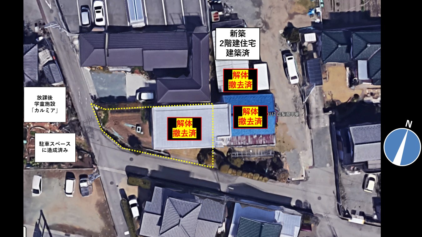 この物件ですが、解体更地にする以前には木造住宅と鉄骨造の車庫と兼用した居室、そして、その北側には大きな倉庫が建っておりました。
