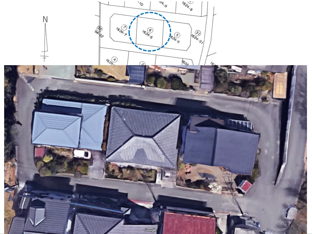 46年前の昭和51年に分譲開発を行い、道幅6mと4.2mの道路を入れて区画された「南面ひな壇」の住宅地です。