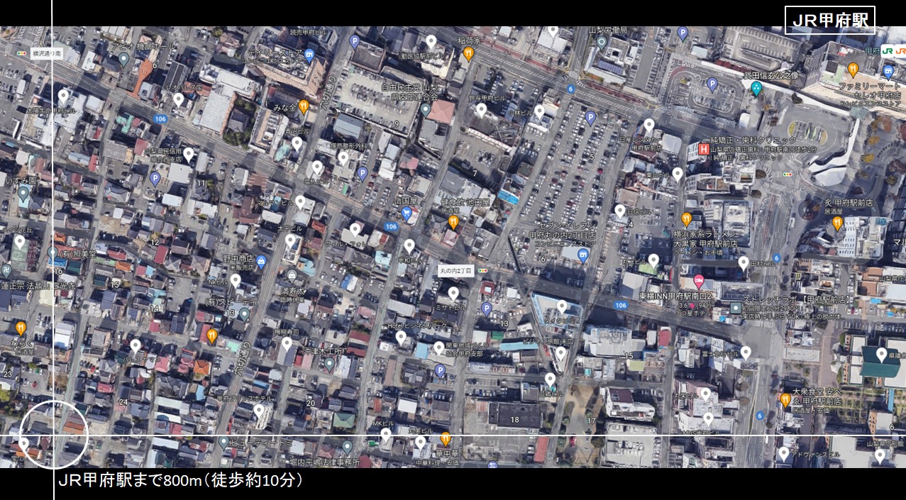 交通:JR中央線甲府駅800m(徒歩約10分)
