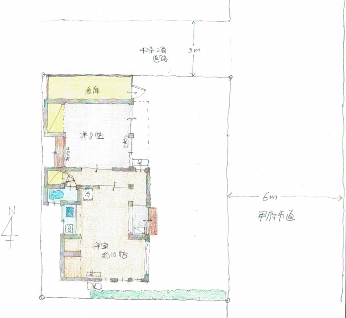 北側3m(建築基準法42条2項道路)