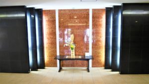 それは、このマンションに入ってきたときに一番最初に気づくと思いますが、エントランスやエントランス脇のコミュニティスペースに綺麗な生花が飾られています。