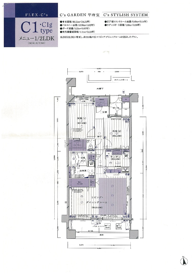 所有者は、お子様が2人の4人家族ですが「家族が集まるリビングダイニングを広くしたい」という要望で、3LDKの間取りを2LDKに新築の入居前に変更して購入を致しました。