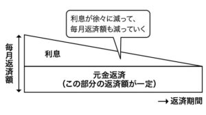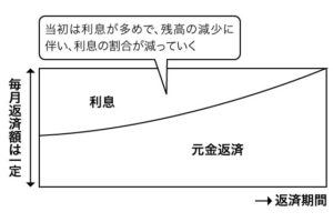 元金と利息を合わせた返済額は一定金額で返済金額に占める元金と利息の割合がだんだん変化する返済方法