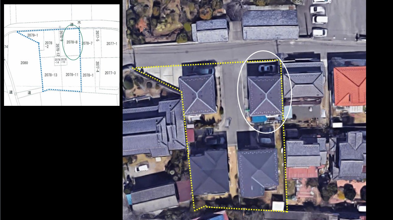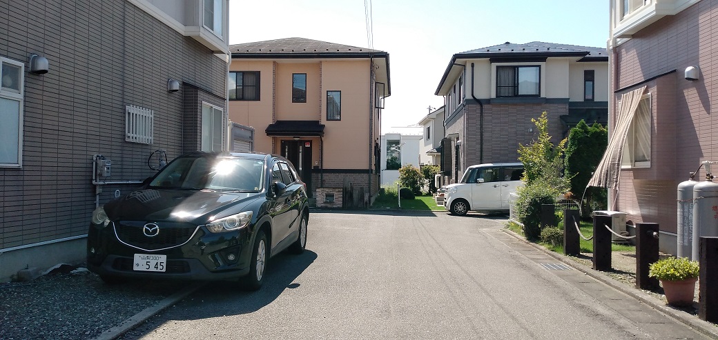 この分譲地の4軒の各々は、土地を購入をした当初からこの通路を共有利用をしておりまして、奥の2軒の専用通路ではありますが「分譲地4軒の共有利用の通路」となります。