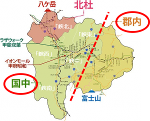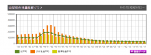 表は土地代データより:表の縦軸は㎡単価、https://tochidai.info/yamanashi/