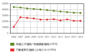 ※国土交通省公表による地価公示データ、および地価調査データより