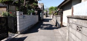 所有者に話を聞くと、昭和30年ごろに国鉄職員の方々がこの場所を購入して移り住んできたとのことです。当時は車もそんなにたくさん見かけることはなく、この広さの進入路があれば、家をつくり生活するのには十分だったのでしょう。