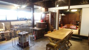 15帖にキッチン・かまど・ダイニングテーブル(6人+2人掛け)+8帖の和室(掘りコタツ)