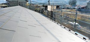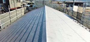ガリバニウム鋼鈑による屋根が葺きあがっています。