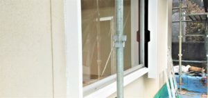 外装で木部が見えている部分にペイントを塗っています。