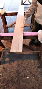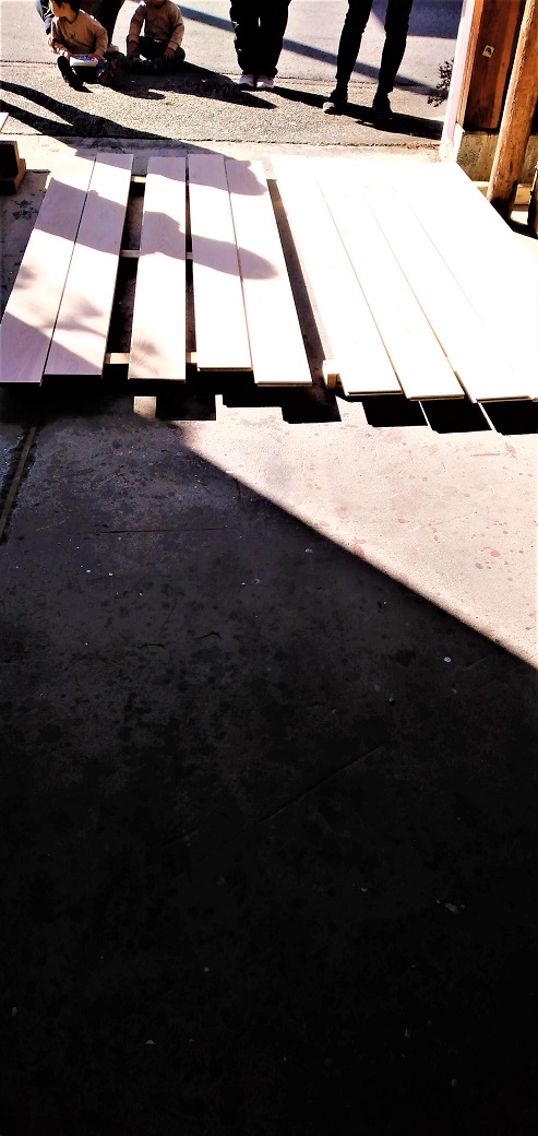 「ヤスリ掛け」の作業も、同じように、からだ中が木材のとの粉に包まれました。